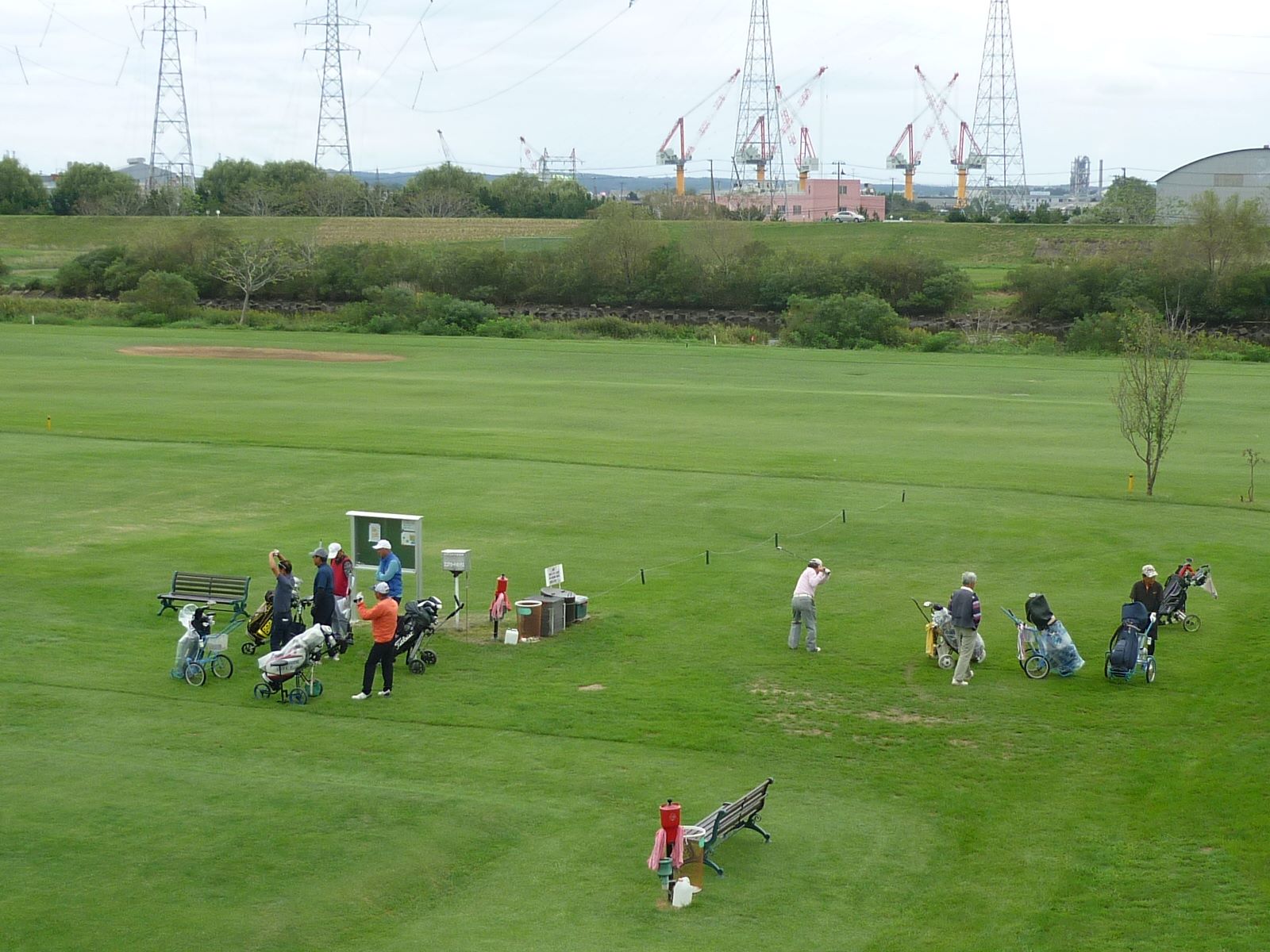 9/20(土)、予報によれば午後から大雨模様、朝スタート時は雲が空一面を覆っていたが雨はなく9ホ-ルに短縮してのスタートだった。午後には予報通り雨がぱらついたが予定ホールは全員が元気にプレーを終えた。